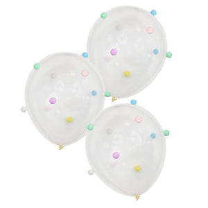 Pack includes 5 pieces of 12" latex balloons and 50 pom poms which can be stuck with glue dots included in pack.