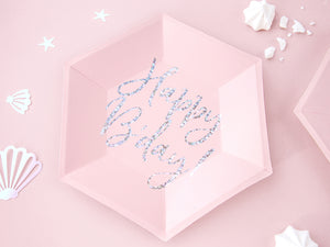 These light powder Pink Paper Plates with iridescent inscription Happy B'day! are the cutest tableware to celebrate any birthday!