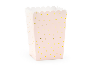 Serve up your favorite snack mix in style with these Light Pink Party Popcorn Boxes! Featuring a pink background with gold dots make these party boxes the perfect addition to your kid's party decor. Use these boxes filled with popcorn for the food table or wrap in cellophane and give as party favors.