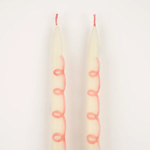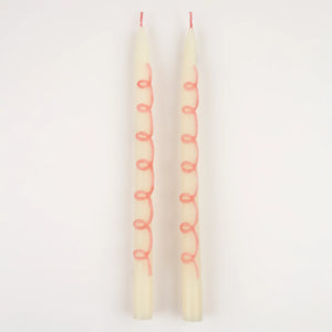 These tapered candles by Meri Meri, with sensational swirls, have a special surprise detail - pink wicks! A wonderful hostess gift, or use to decorate the table or mantel at a party where pink will look just perfect, like a baby shower, bridal shower, princess or fairy party.