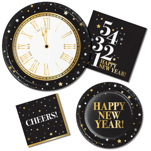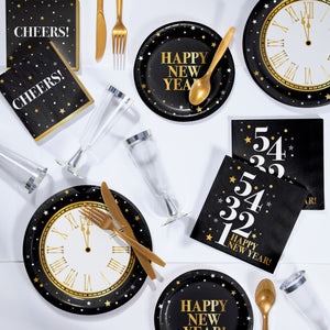 Before the New Year begins, indulge yourself with some delicious food on the Golden New Year Dinner Plates. These sturdy plates feature the words Happy New Year! with a gold, white, and black theme.