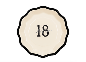 Celebrate the big 1-8 with these cream-colored plates, featuring black accents and a shiny silver "Hello" inscription. Perfect for adding a stylish touch to an 18th birthday celebration!
