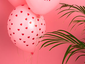 These Pastel Baby Pink Balloons are decorated with an all-over print of red love hearts. These lovely party decorations are ideal for Valentine's Day!