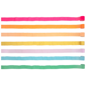 These rainbow paper streamers are perfect to add a splash of color to any party. Featuring seven different colored streamers.