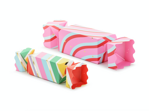 It's time for a sweet celebration, so pick up Candy Wrapper Favor Boxes. These cardstock favor boxes feature two colorful striped designs and sizes that look like candy wrappers. Arrange the boxes on the table and hand them out as guests arrive at your little one's Candy Land Birthday party. Put activities, candy, and small toys into these treat boxes for the guests at your Candy celebration!