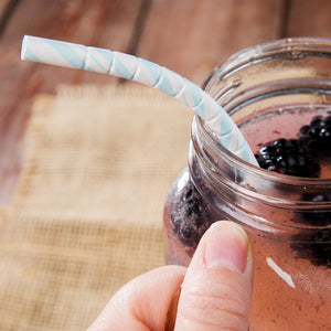 These pastel blue party straws are a planet-friendly alternative to plastic! They’re made from a biodegradable material and planet-friendly ink, meaning you can party on with the planet in mind! They’re more flexible (and less soggy) than a paper straw, but without the plastic fallout! Perfect!