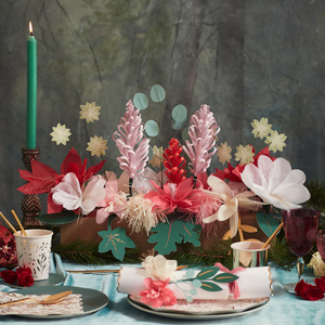 Meri Meri designers have collaborated with Hazel Gardiner, a talented London based floral designer, to create this amazing centerpiece. It includes beautifully crafted paper flowers and leaves to make your festive table look sensational. Unlike fresh flowers, it will last for years and years.