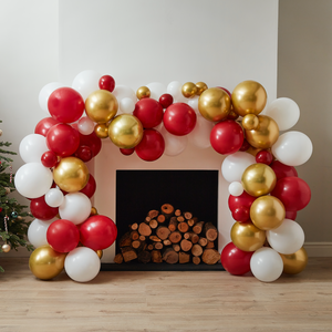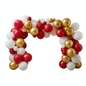 Create the ultimate Christmas display with this stunning Gold, Red & White Balloon Arch Kit. The traditional colors of red, gold and white have been updated with a modern balloon arch twist, and will really help set your house apart this season! Use around a mantlepiece or as an addition to your decor to create that festive feeling.