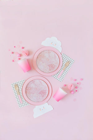 These sophisticated double sided Large Rose Quartz Plates are a must to any modern party.