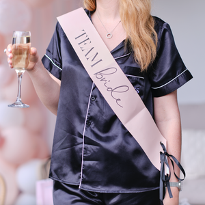 Dress your hens with these gorgeous pink Team Bride sashes. The pink paper sashes have stunning black Team Bride font which is sure to be loved by all the hens!