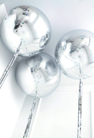 These incredible Silver Orbz Balloons will not fail to make an impact! This shining balloon is super-reflective and looks amazing on its with the foil tassels to create a fabulous balloon bouquet. Perfect for celebrations of all types and particularly popular for photo props.