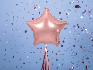 Add some shine to your celebration with this Rose Gold Star Foil Balloon. The balloon in the shape of a star is made from pink satin foil. Use the star balloon on its own or mixed with other foil or latex balloons to create a balloon bouquet or photo backdrop. This star balloon is perfect to use for a baby shower or even a bridal shower.