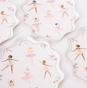 These beautiful Ballerina Party Plates by Meri Meri feature a wonderful curved border and illustrations of dancing ballerinas. They will add amazing decor to your party table, and really delight your guests.