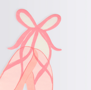 You'll have a clean and on pointe party with these Ballerina Slippers Napkins by Meri Meri. These small dessert napkins feature a pretty pink pair of ballet slippers. Use them to set the table or leave a stack on the dessert table at your tutu cute celebration.