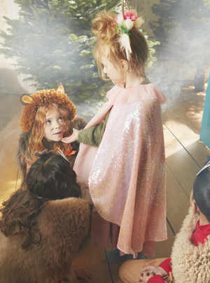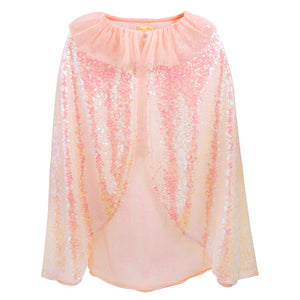 This gorgeous Iridescent Sequin Cape Costume by Meri Meri is the perfect accessory to add a touch of style, flair and color to any outfit. Great for dress-up fun, or to wear to a special celebration. It's beautifully crafted from an iridescent sequin lined fabric, with a pink tulle collar with popper fastener for a charming touch. It comes with a glittering silver star wand with a shimmering tassel.