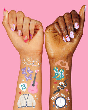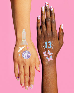 Tats so cute, they’re basically a personality. This sheet comes packed with full-color temporary tattoos, finished with iridescent foil for extra shine. Whatever era you’re celebrating, do it with these!