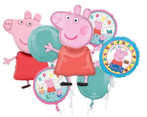 Balloons are inflated with helium with ribbon and a balloon weight to stop it floating away.