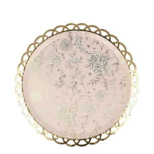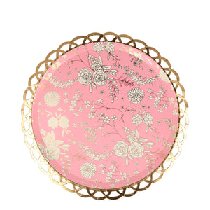 These elegant English Garden Lace side plates will add a beautiful touch to your table setting. Perfect for a tea party, anniversary, engagement or wedding. Available in a pack of eight, with four colors - pale pink, dark pink, blue and green. They have gorgeous gold foil detail with a foil outline pattern.