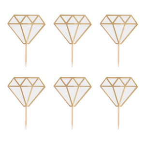 Each pack contains 6 toppers measuring 8cm (H) x 5.3cm (W) with wooden sticks.