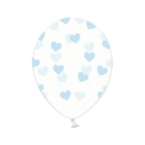 These adorable Crystal Clear Balloons are printed all over with cute Blue Hearts and are perfect for birthday parties or baby showers.