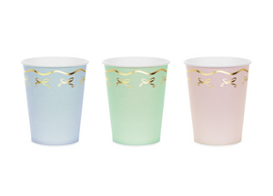 Add a pop of color to your party with these charming bow tie cups, available in blue, green, and pink. Perfect for serving cold beverages at any celebration! A fun and colorful addition to your party table.