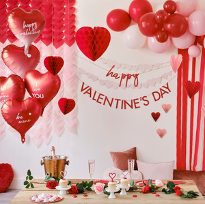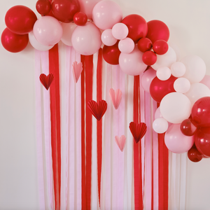 Make the perfect romantic party backdrop with this red & pink balloon arch kit! This balloon arch contains beautiful shades of red and pink, plus streamers and paper heart decorations. Simply hang on the wall or from a doorway to create a focal point for your occasion.