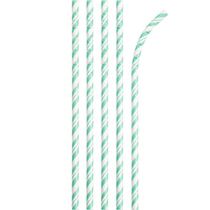 These quality paper straws, in a fresh mint and white candy stripe print, are biodegradable and sustainably sourced. Patented Eco-Flex® technology gives them the bend and flex of a plastic straw, and reliable quality means no unraveling or disintegrating. This straw is meant for quality, single-service use and can be conveniently disposed of once your guest is done using it.