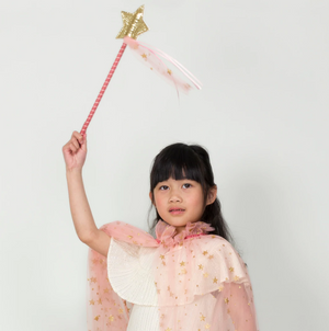 This wonderful Pink Star Tulle Cape and Wand by Meri Meri will look amazing for princess parties or imaginative play. It is crafted from soft tulle with gorgeous gold glitter stars for a sparkling effect.